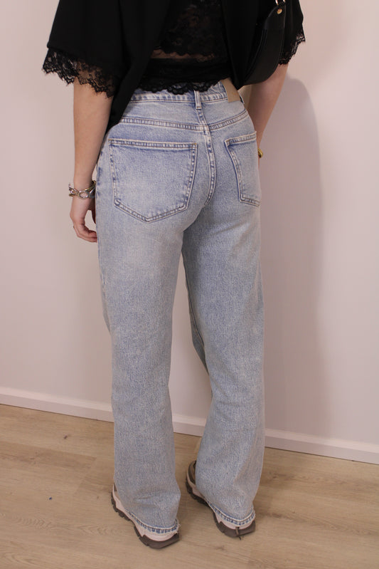 AanbiedingHigh waist - wide leg stretch jeans - beige