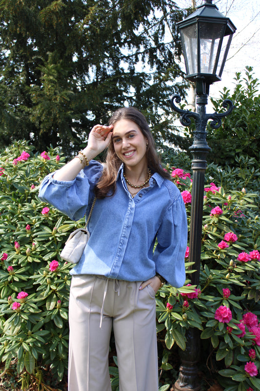 Blouse met pofmouw - denim