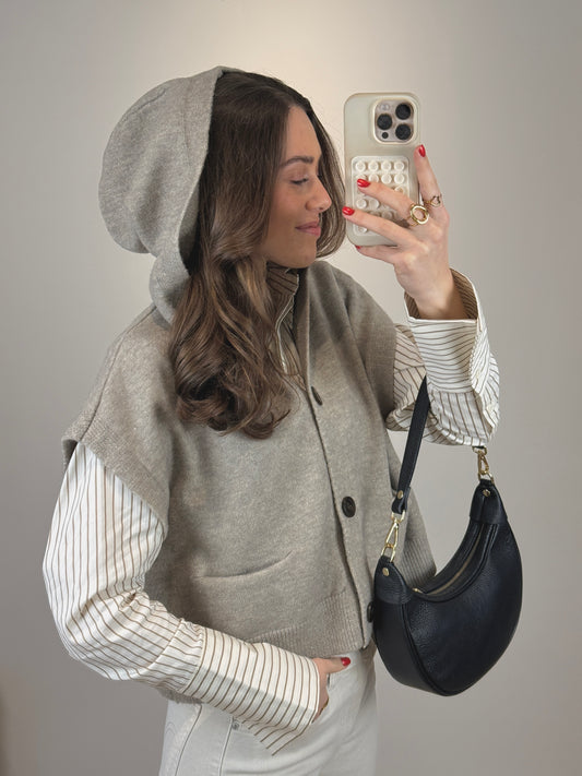 Spencer top/vest met capuchon - taupe