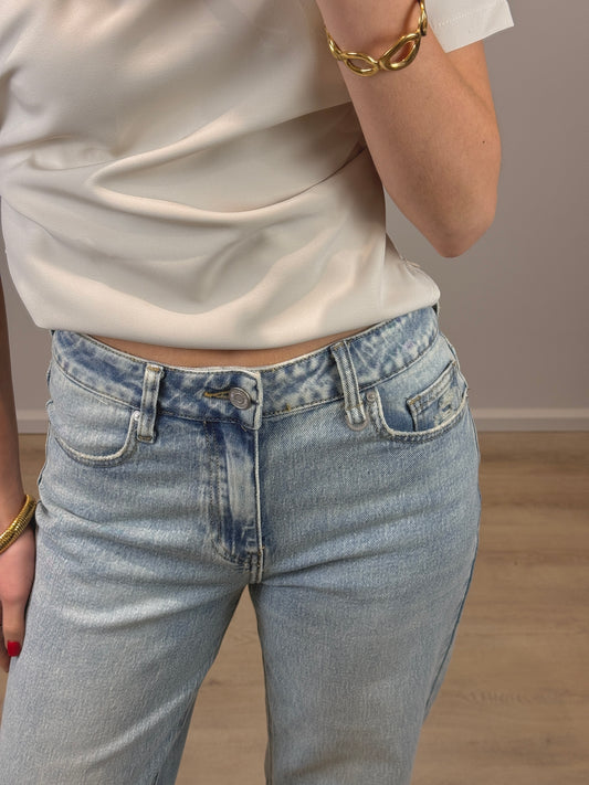 Mid waist - balloon stretch jeans met omslag - denim