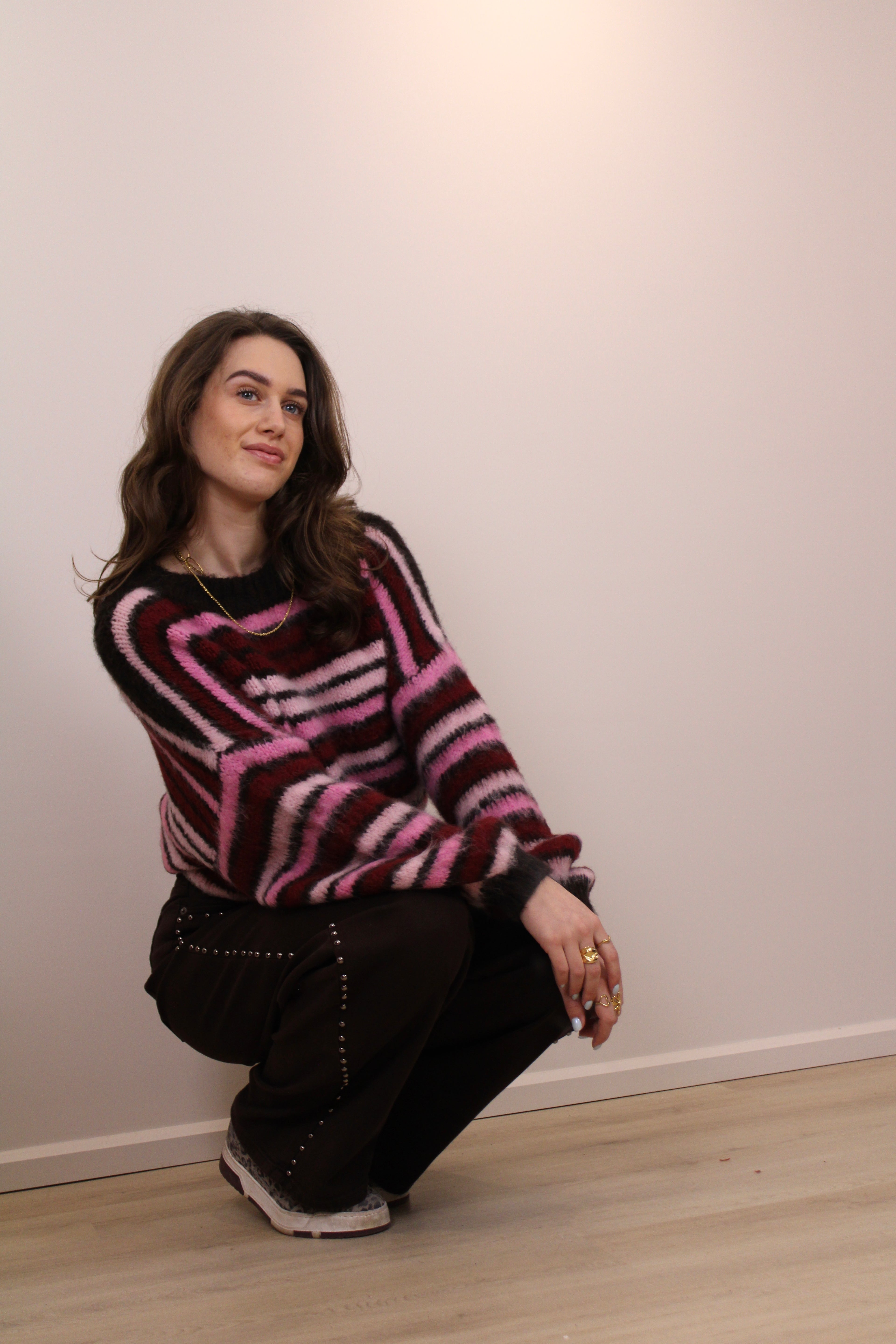 Gestreepte trui - bruin/roze/bordeaux