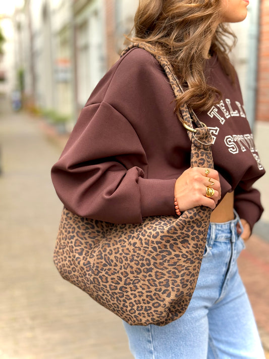 Leren suede tas/shopper Suez - panter