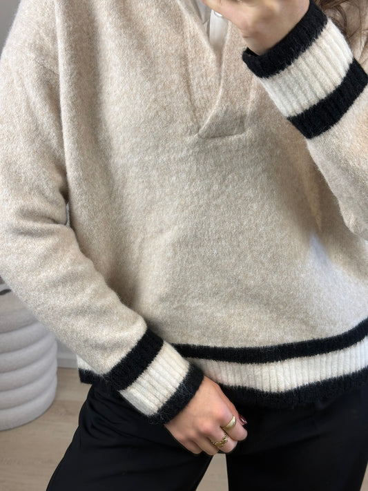 AanbiedingTrui met blouse kraagje - beige