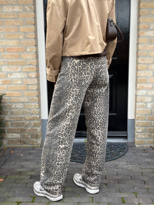 Cow print stretch jeans met ceintuur (niet te retourneren)