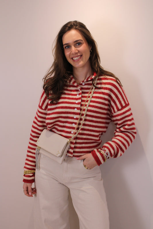 Gestreepte trui/vest met knoopjes - rood/creme