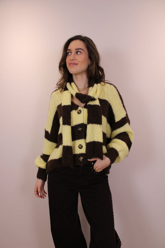 Gestreept vest/trui met sjaaltje - bruin geel