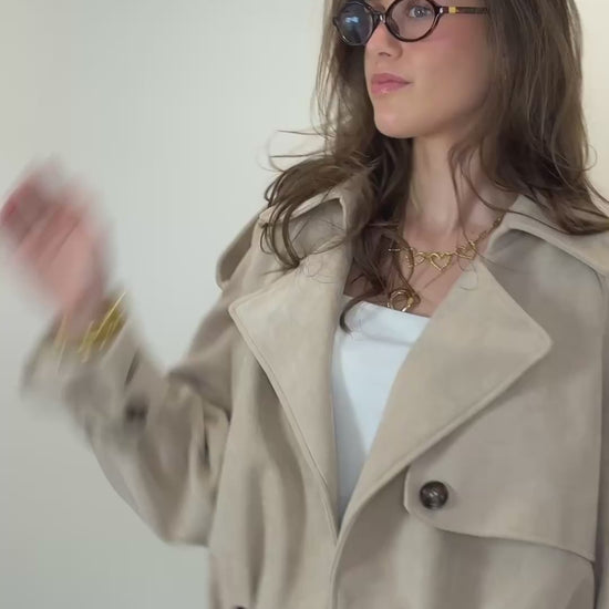 Deze suedine jas zit heerlijk en past overal bij. Perfect voor het voorjaar en makkelijk te dragen over elke outfit, van werk tot weekend.