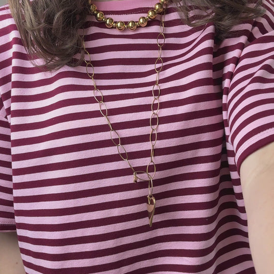 Omg dit is echt een snoepje! 🍬 Dit oversized shirt met bordeaux-roze strepen is zó leuk en zit ook nog eens heerlijk. De kleurencombi is supertrendy en is toch helemaal leuk! Zo’n item dat je gewoon elke dag wilt dragen!