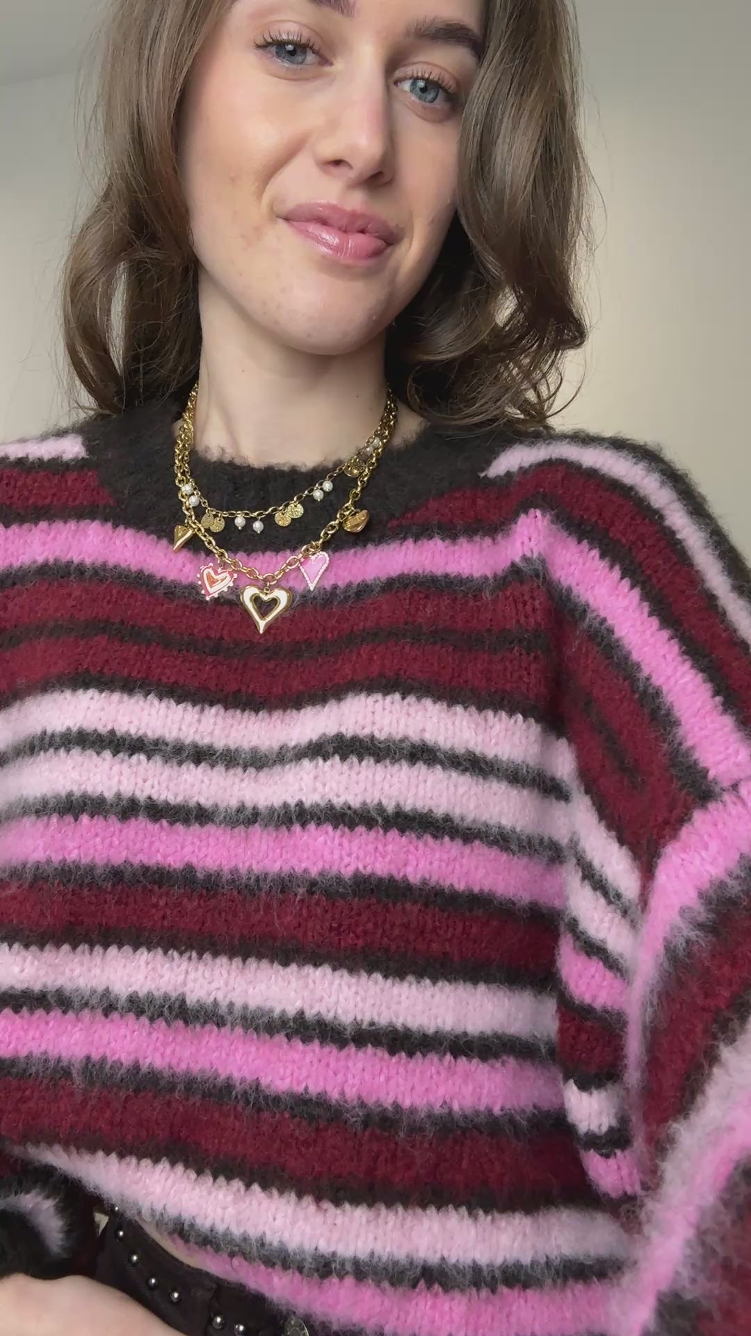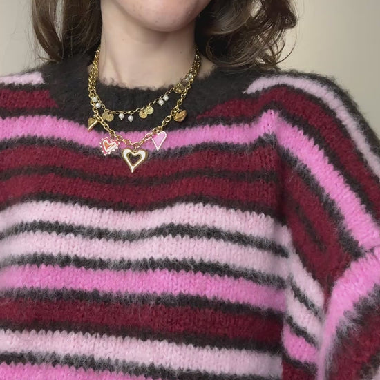Gestreepte trui - bruin/roze/bordeaux
