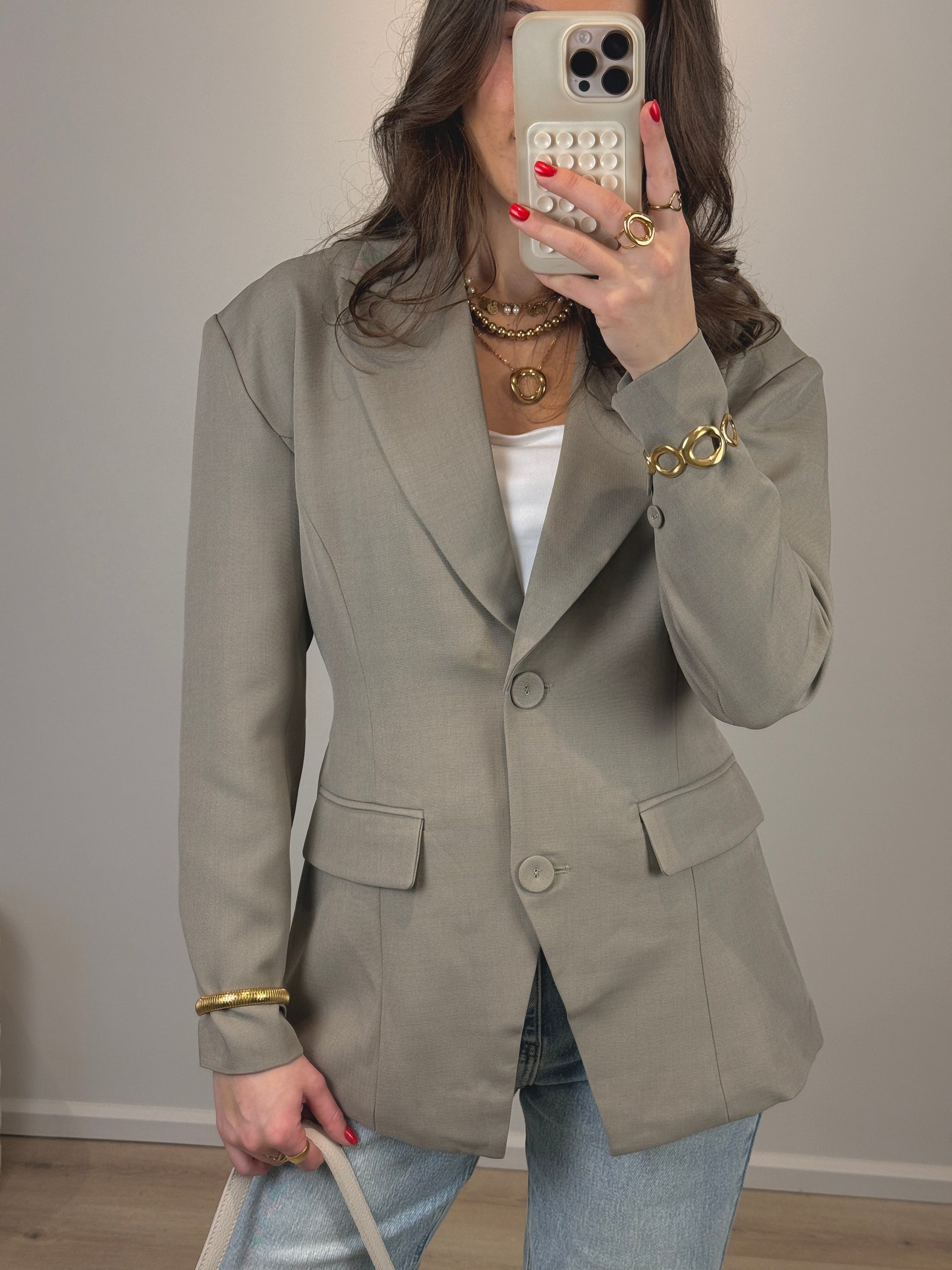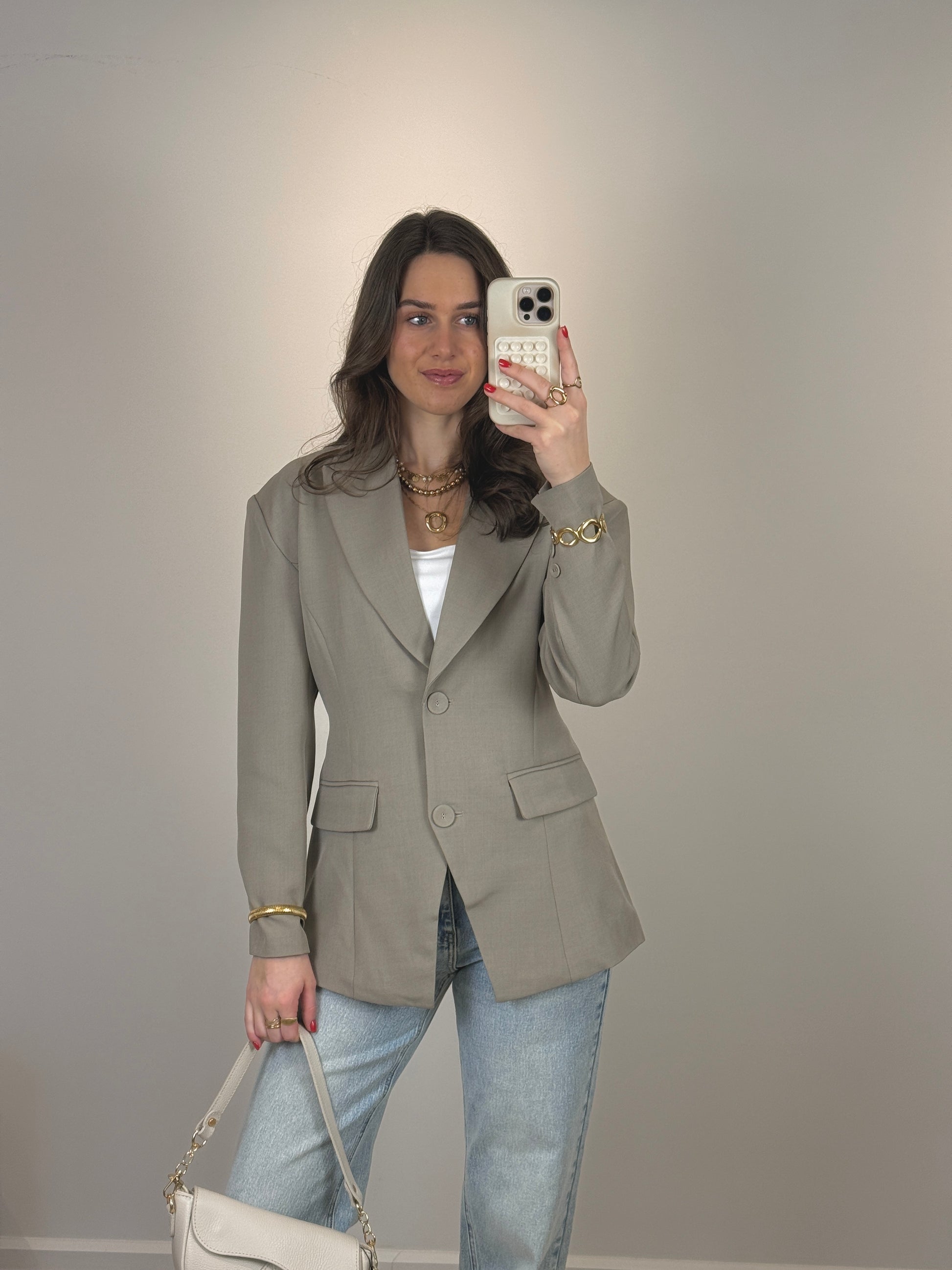 Getailleerde blazer met riem - taupe