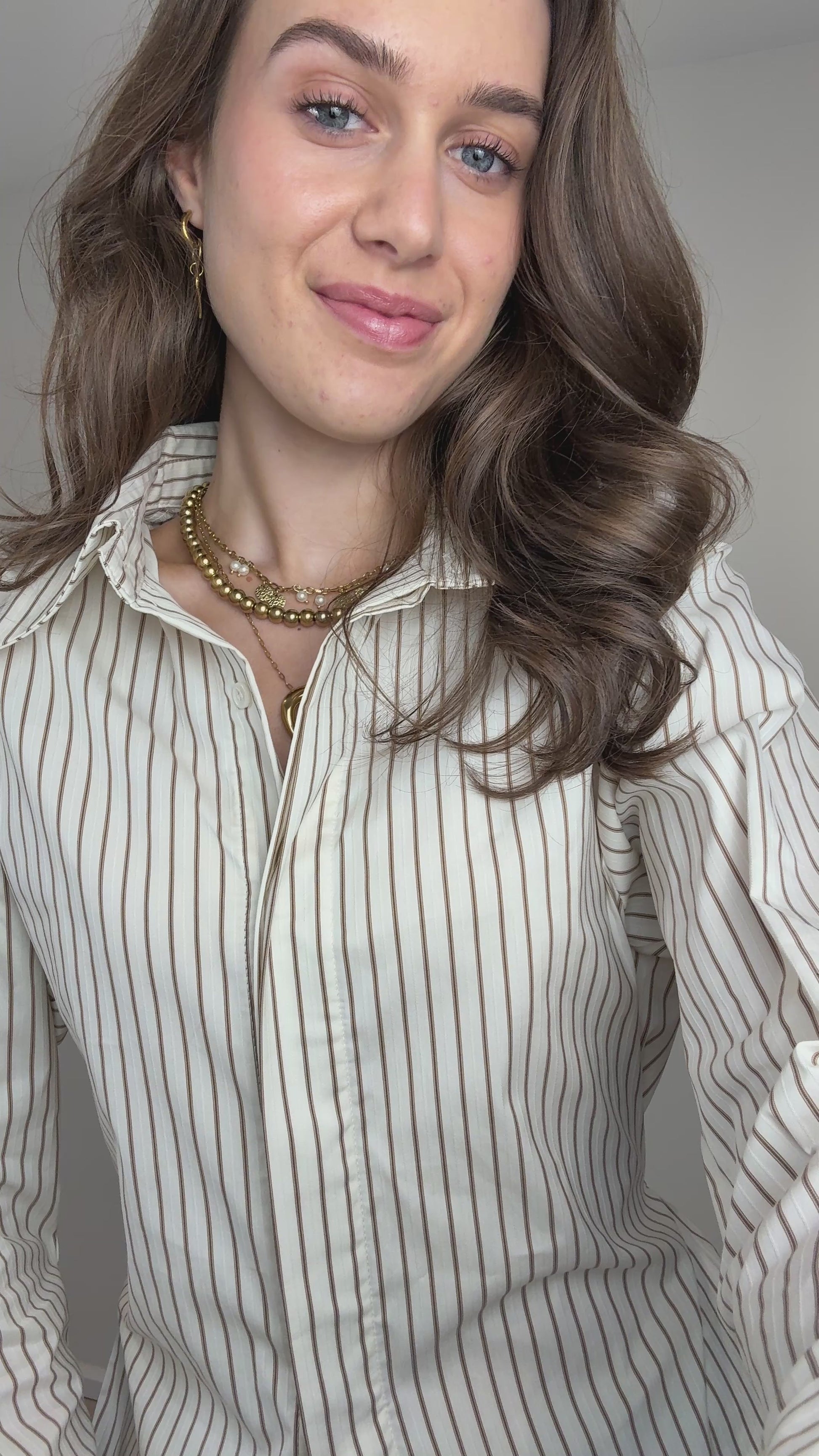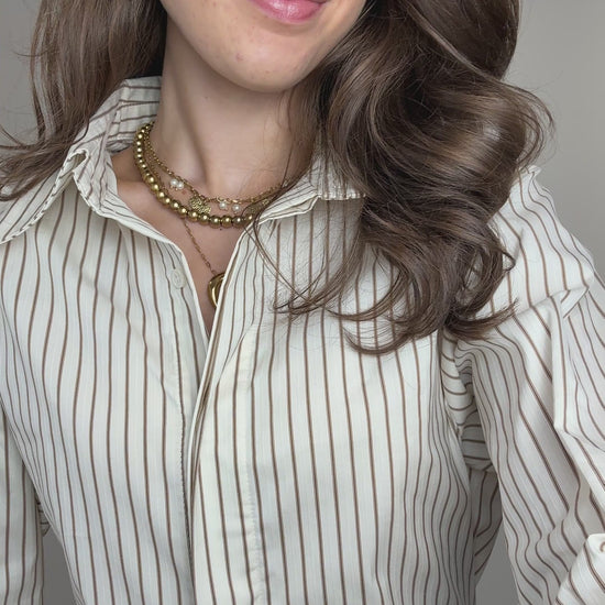 Deze getailleerde blouse met strikbaar touwtje aan de achterkant is zó cute. De witte stof met subtiel beige streepje maakt ’m perfect voor werk, maar ook leuk voor een dinner date.