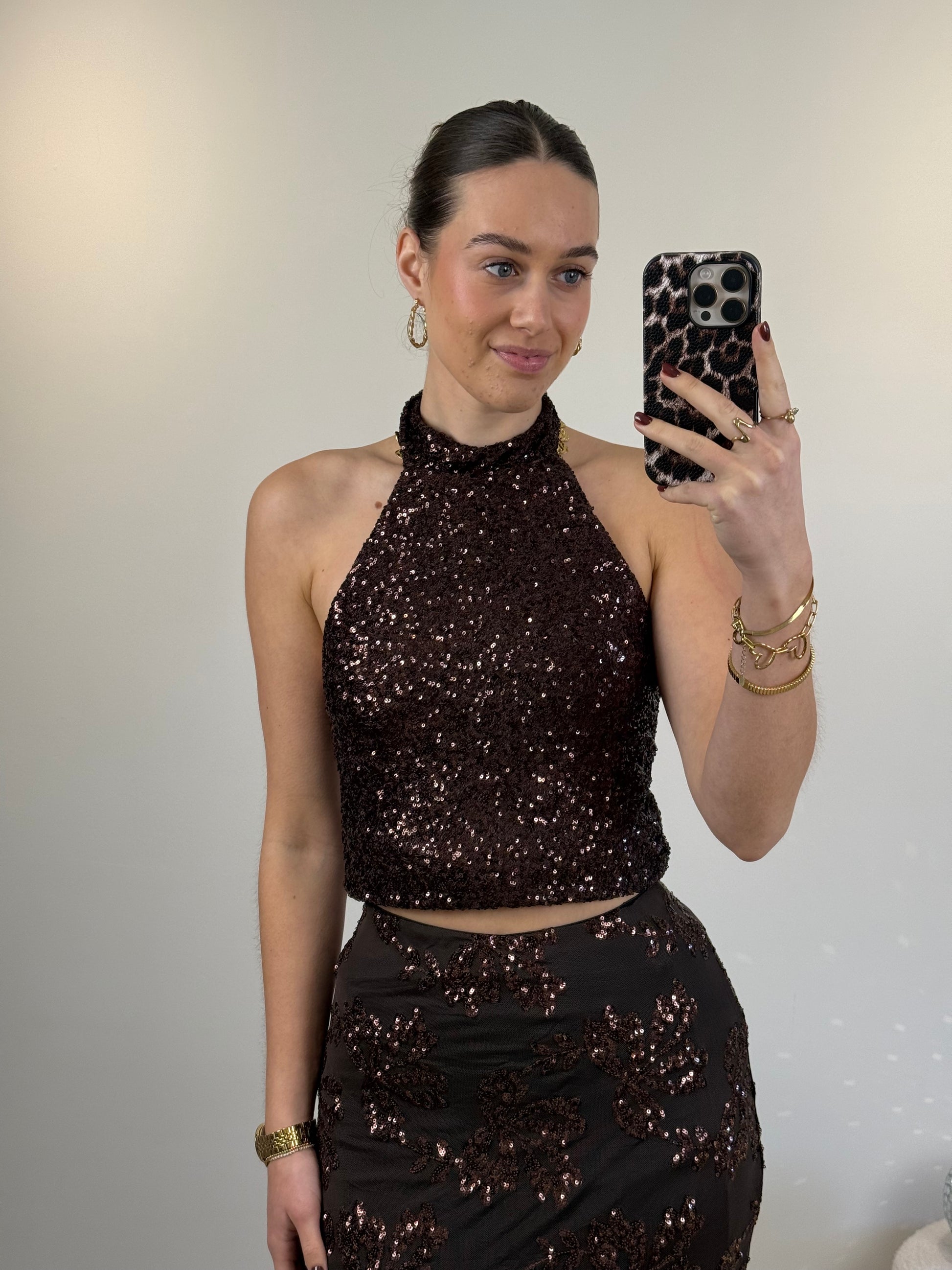 Glitter halter top - bruin