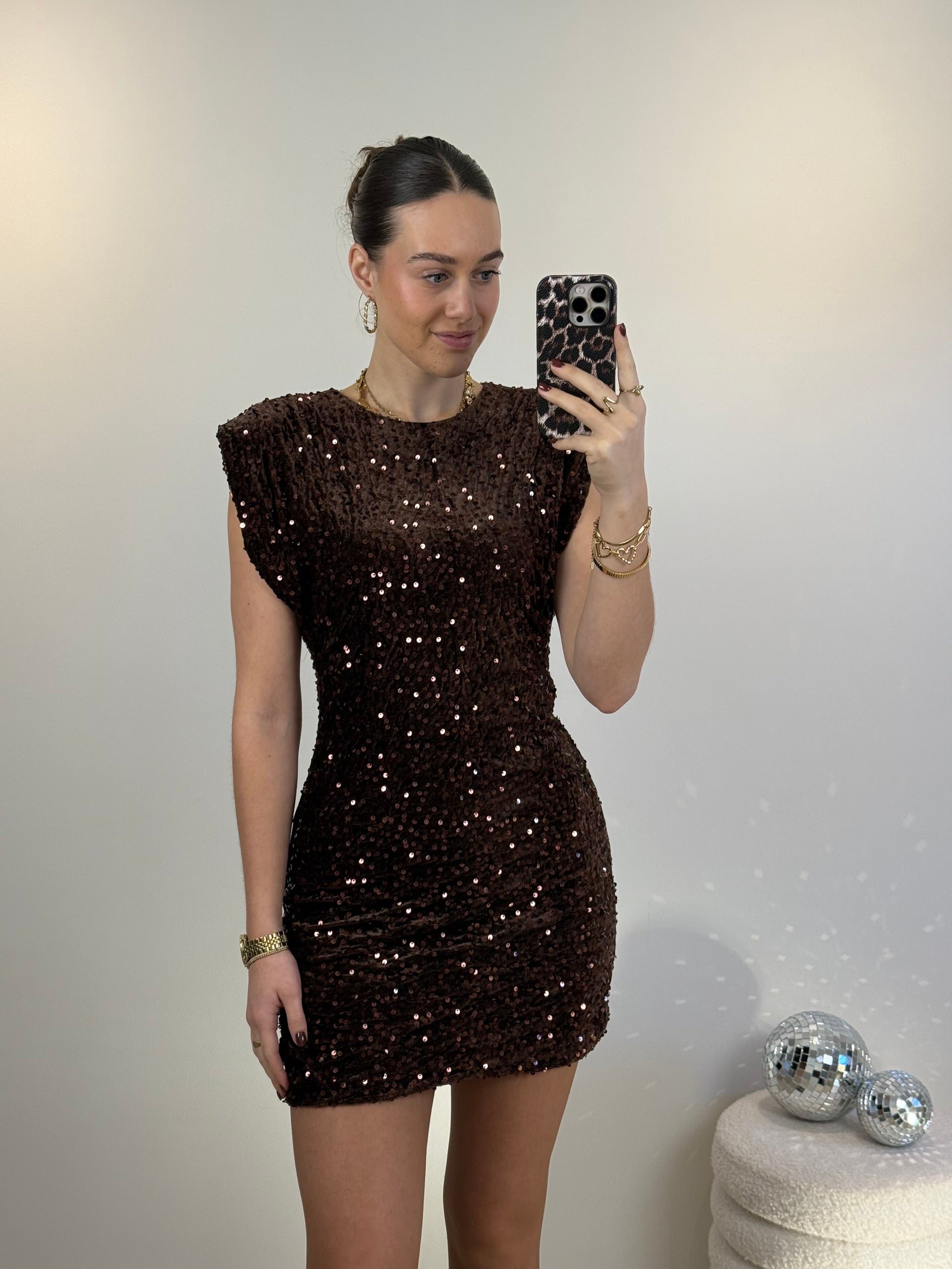 Wauwie girls! 😍 Dit bruine jurkje laat je figuur zó mooi uitkomen. Door de schoudervulling krijg je die perfecte shape en de stof zit heerlijk. Combineer met hakken of laarsjes voor een leuke feestlook. Deze kleur is echt perfect voor het najaar!