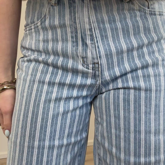 High waist - wide leg stretch jeans met streepjes - denim
