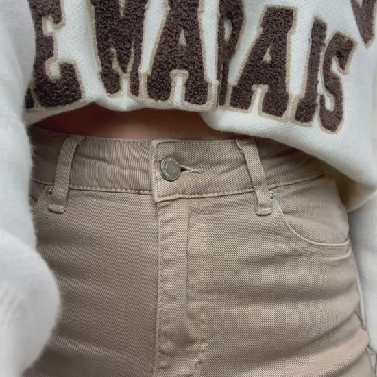 Wauw! Hoe gaaf is deze beige jeans. Zit super lekker, bevat veel stretch en sluit erg mooi aan. De omgeslagen rand kun je verstellen mocht dat nodig zijn.