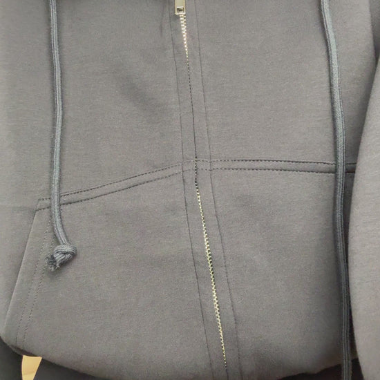 Deze donkerblauwe joggingset wil je élke dag aan. Het vest met rits en capuchon geeft een sportieve edge, terwijl de broek met elastische band en zakken heerlijk zit. Perfect voor chill days.