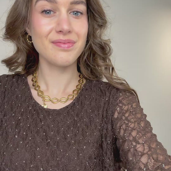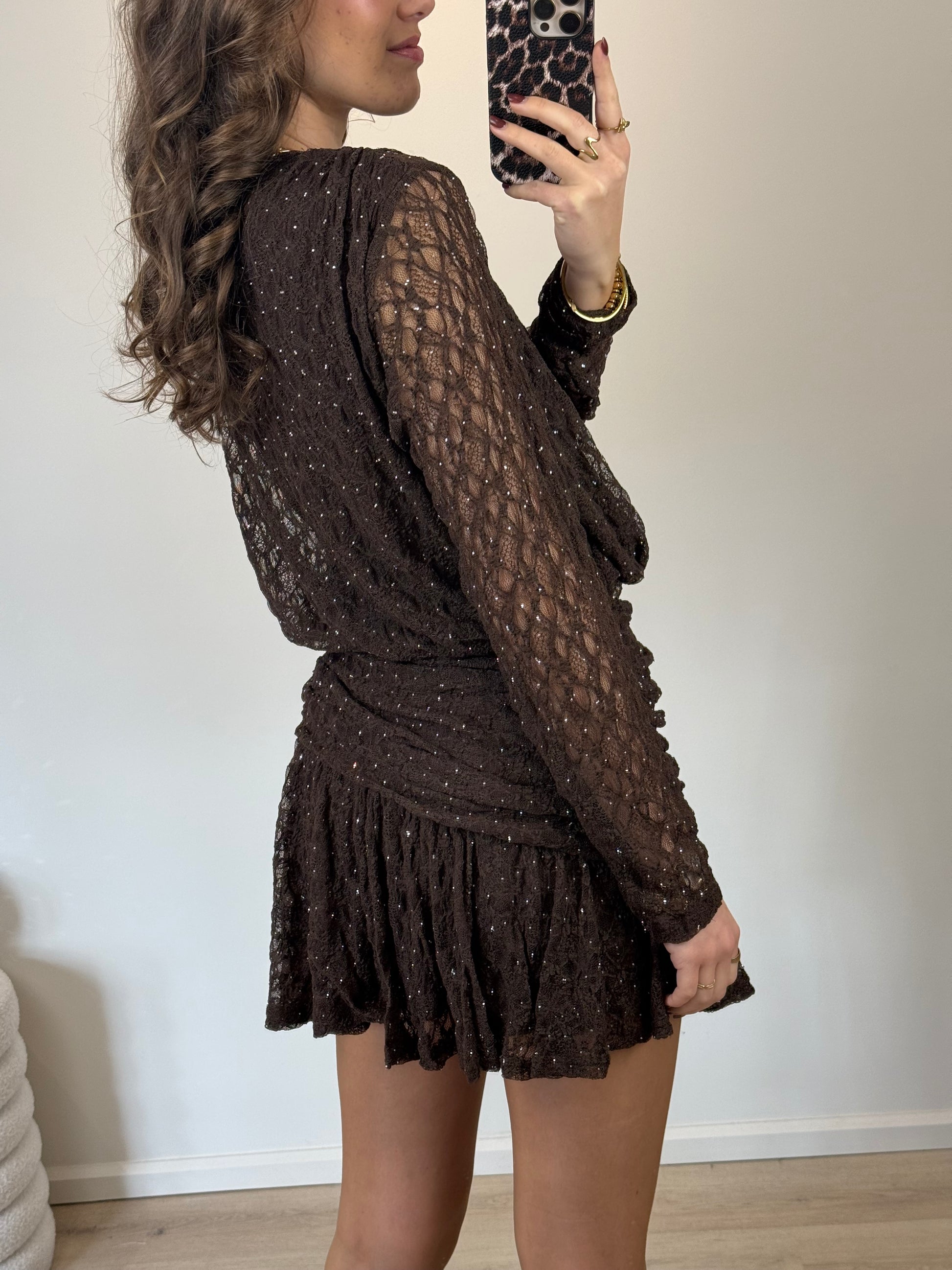 Kanten jurkje met glitters - bruin
