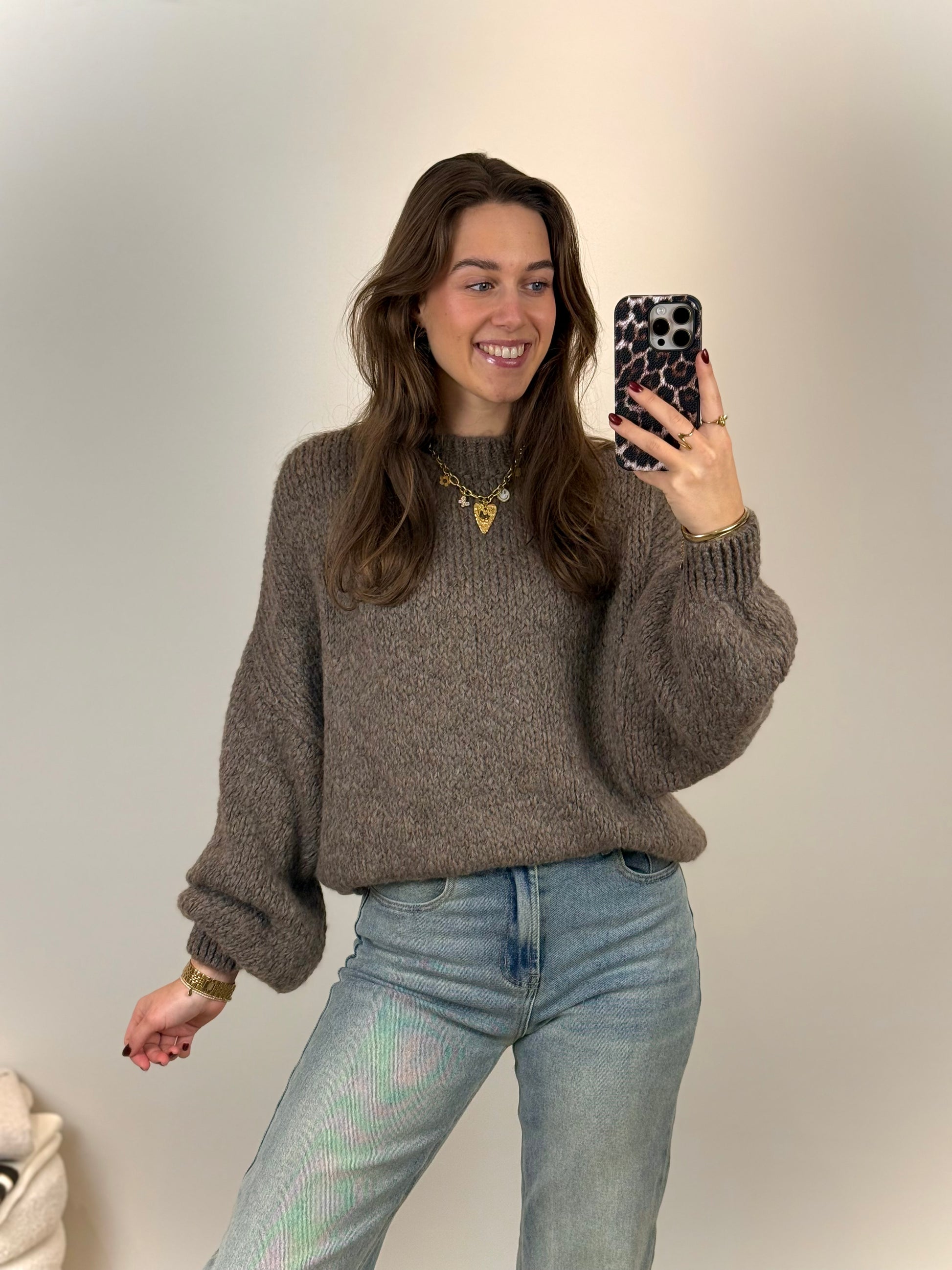 Oversized gebreide trui - taupe