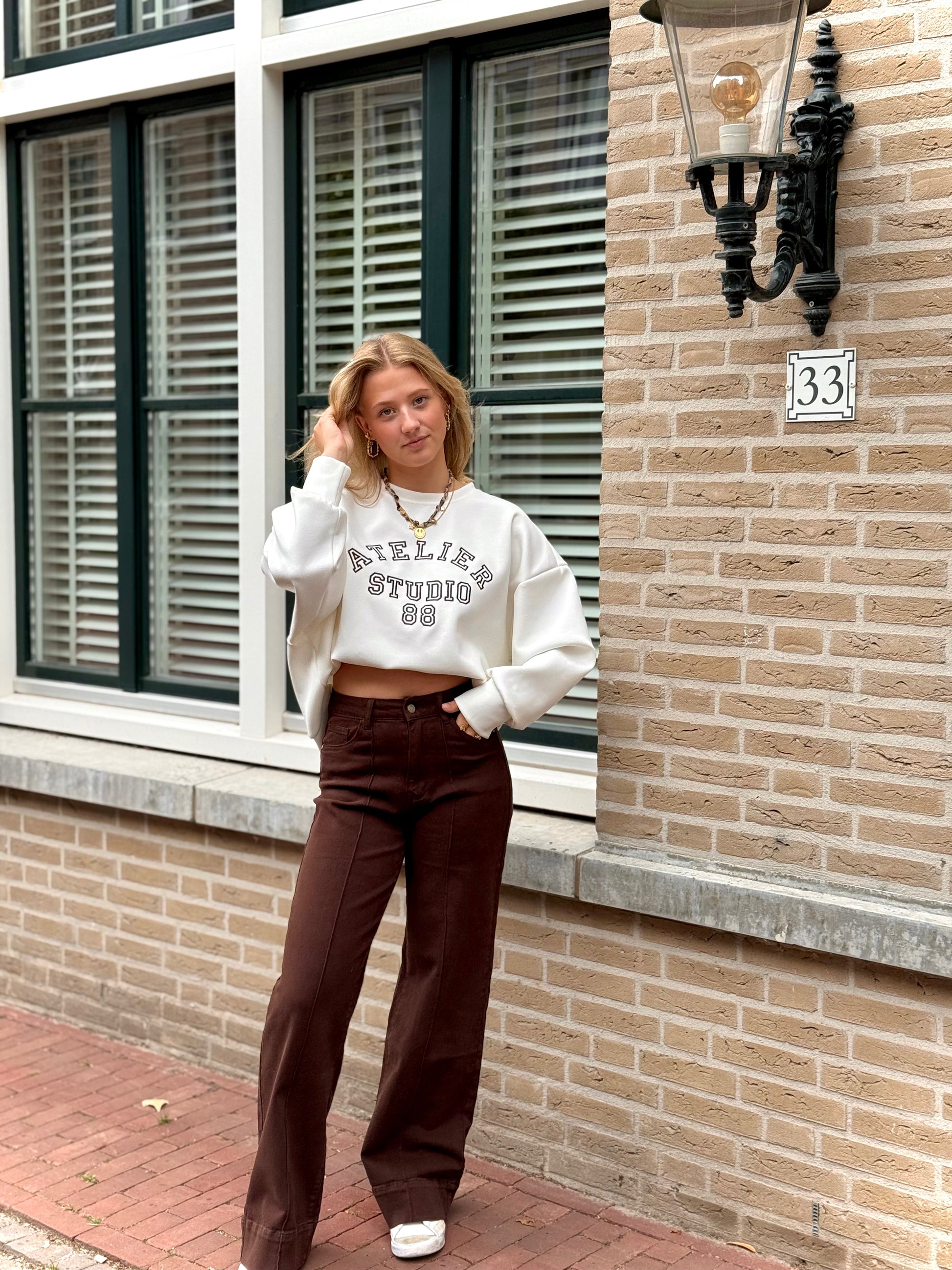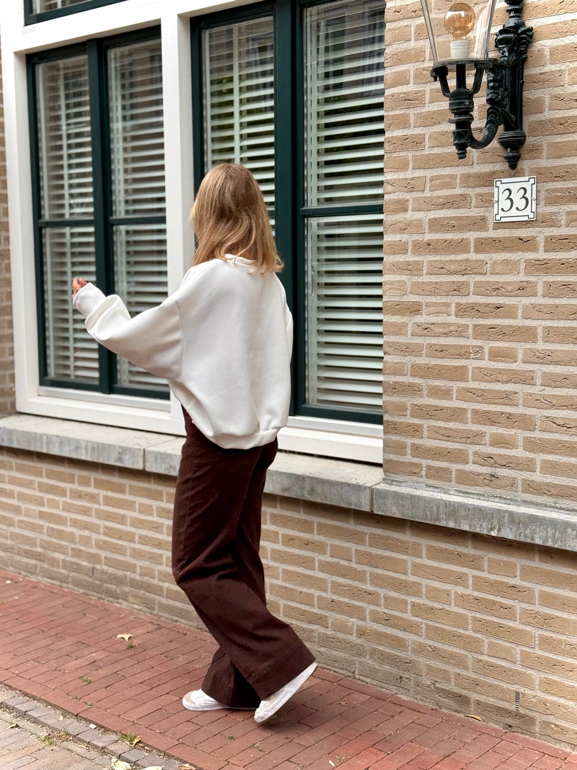Als je hem eenmaal aanhebt wil je hem nooit meer uit... Deze heerlijke damestrui zit super lekker en is zo leuk! Makkelijk te combineren maar natuurlijk extra leuk op onze bruine jeans.