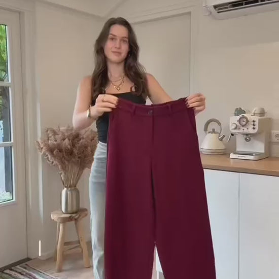 We are obsesseddd! Deze bordeaux pantalon bevat stretch en zit heerlijk! Aan de achterkant bevat de jeans een elastieke band zodat hij mooi aansluit.