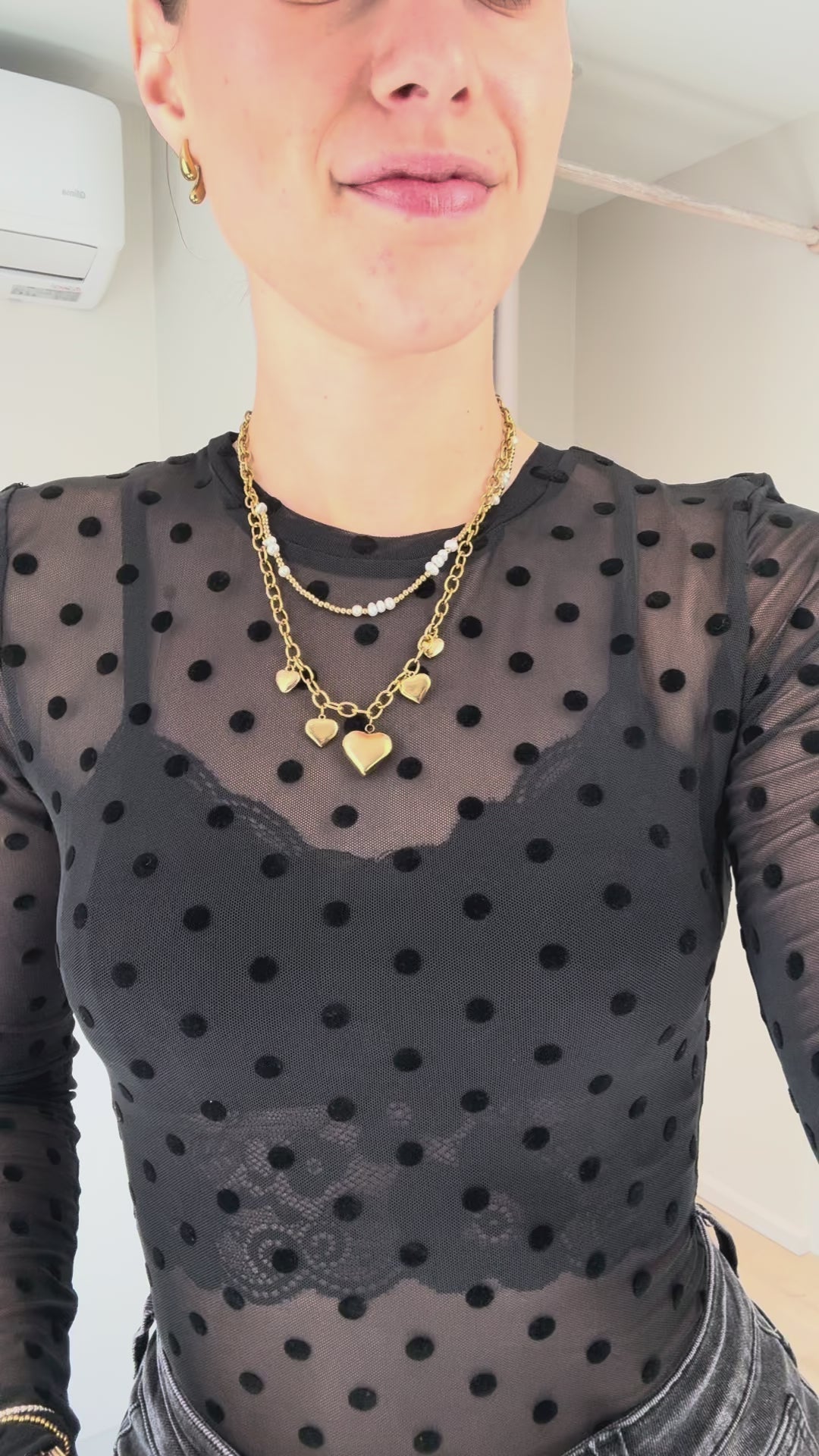Hoe leuk is deze mesh top met polkadots! Helemaal trending op het moment. De top is van een fijne stretch stof en sluit mooi aan. We hebben de top gecombineerd met onze zwarte brallete.
