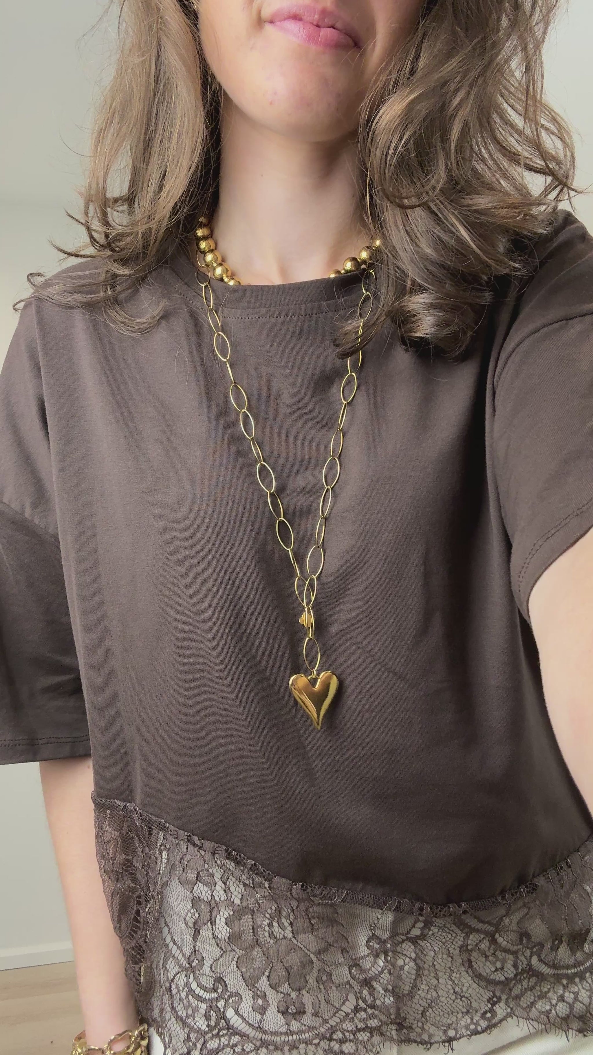 Shirt met kant - bruin