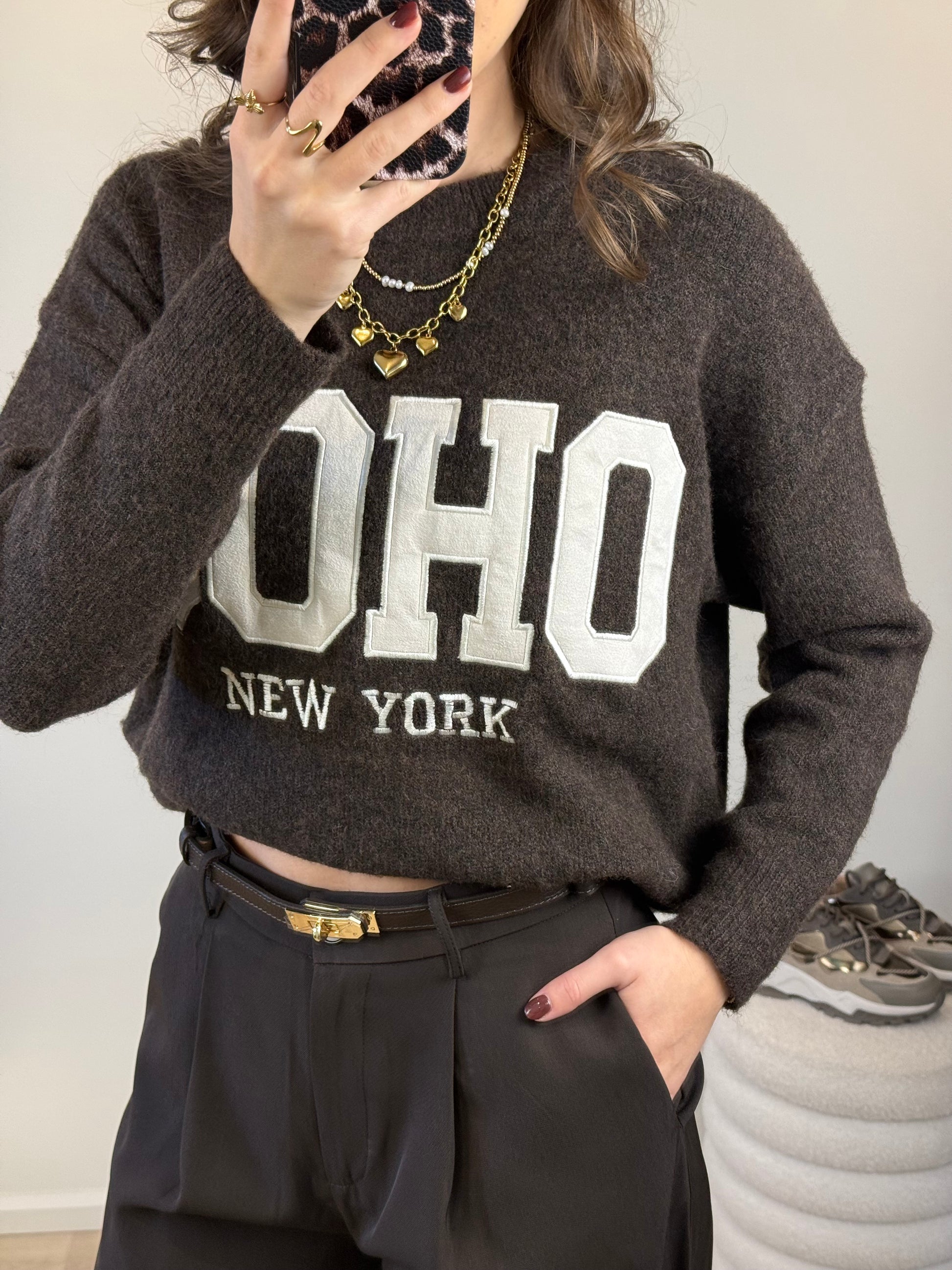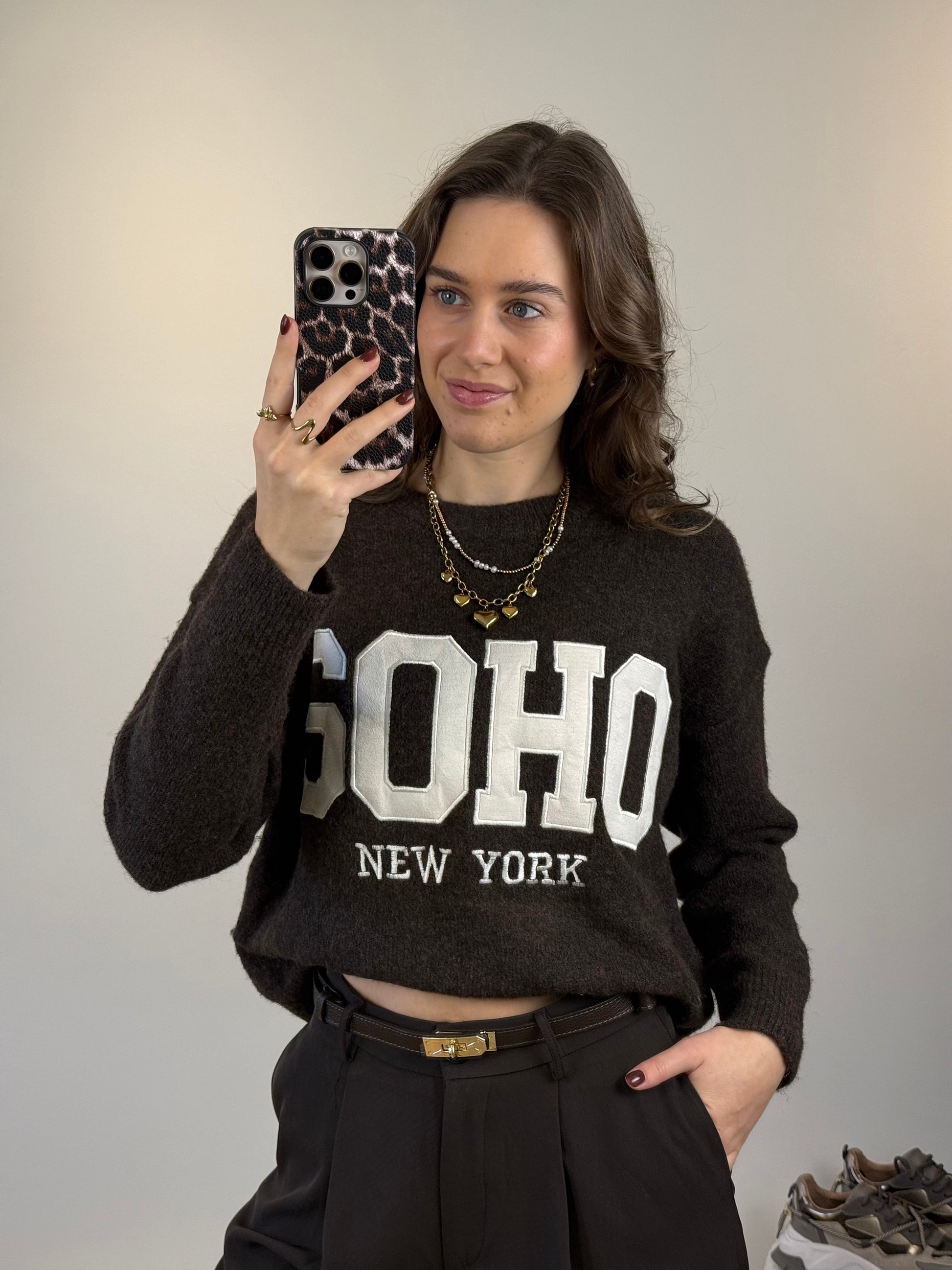 Truien kun je nooit genoeg hebben en deze Soho trui is echt een musthave! 🤎 De bruine kleur met beige letters maakt hem helemaal on trend. Zacht, comfy en gewoon mega leuk. Deze trui maakt elke outfit compleet!