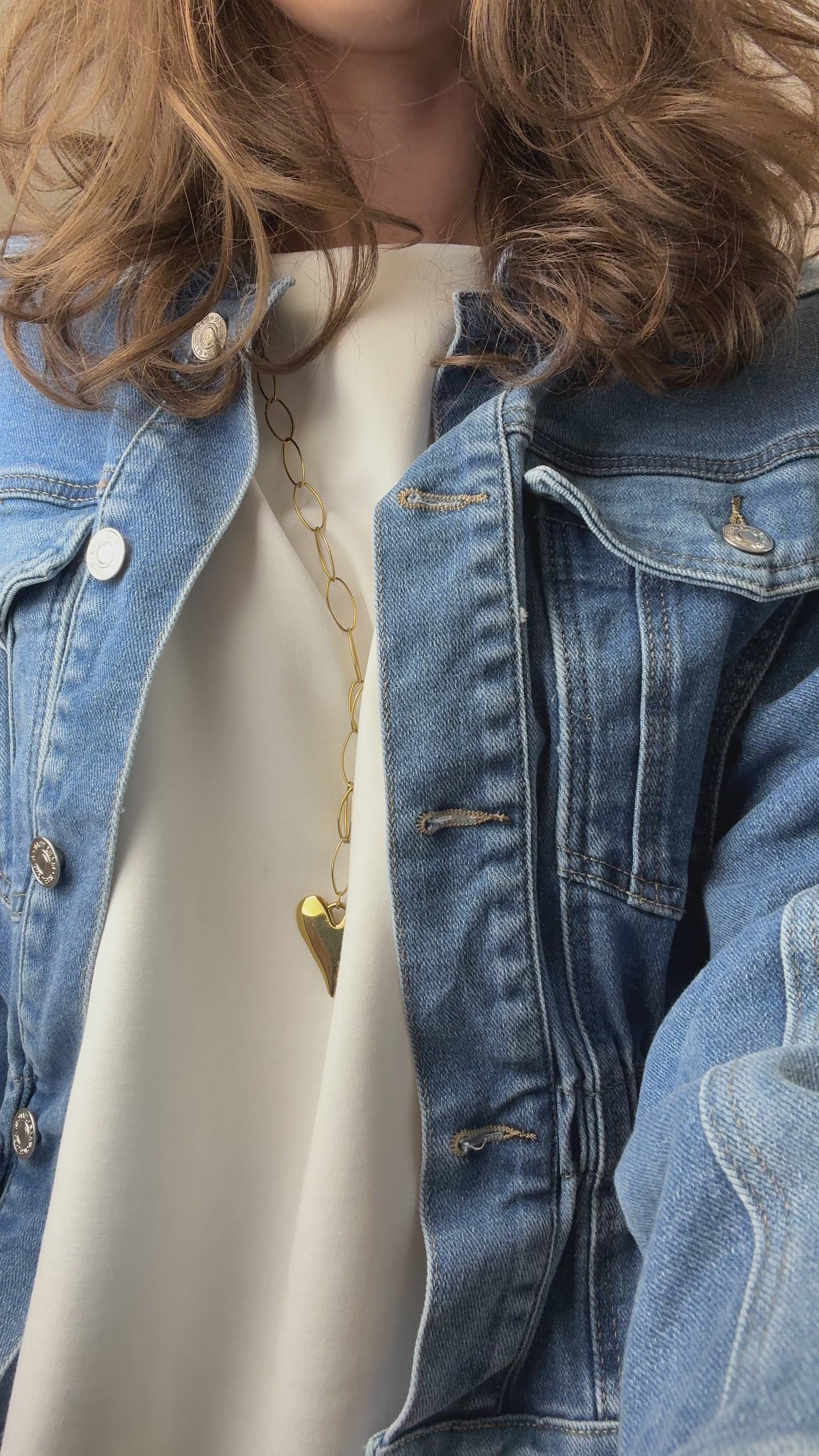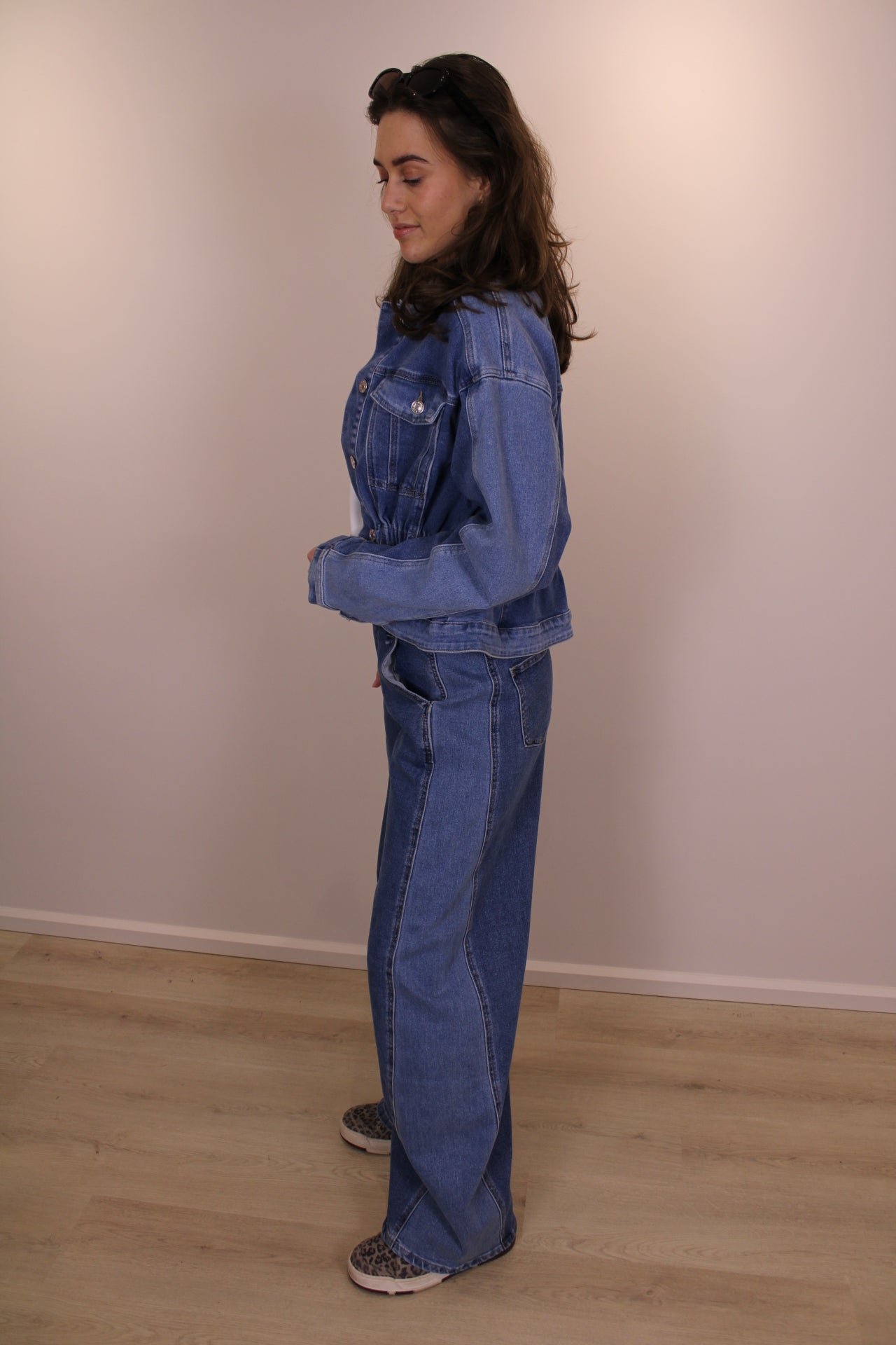 Dit getailleerde spijkerjasje met bijpassende balloon jeans wil je gewoon hebben. De denim set is gemaakt van twee kleuren denim en dat maakt deze spijkerset net even anders. Zit heerlijk en is perfect voor iedere gelegenheid!