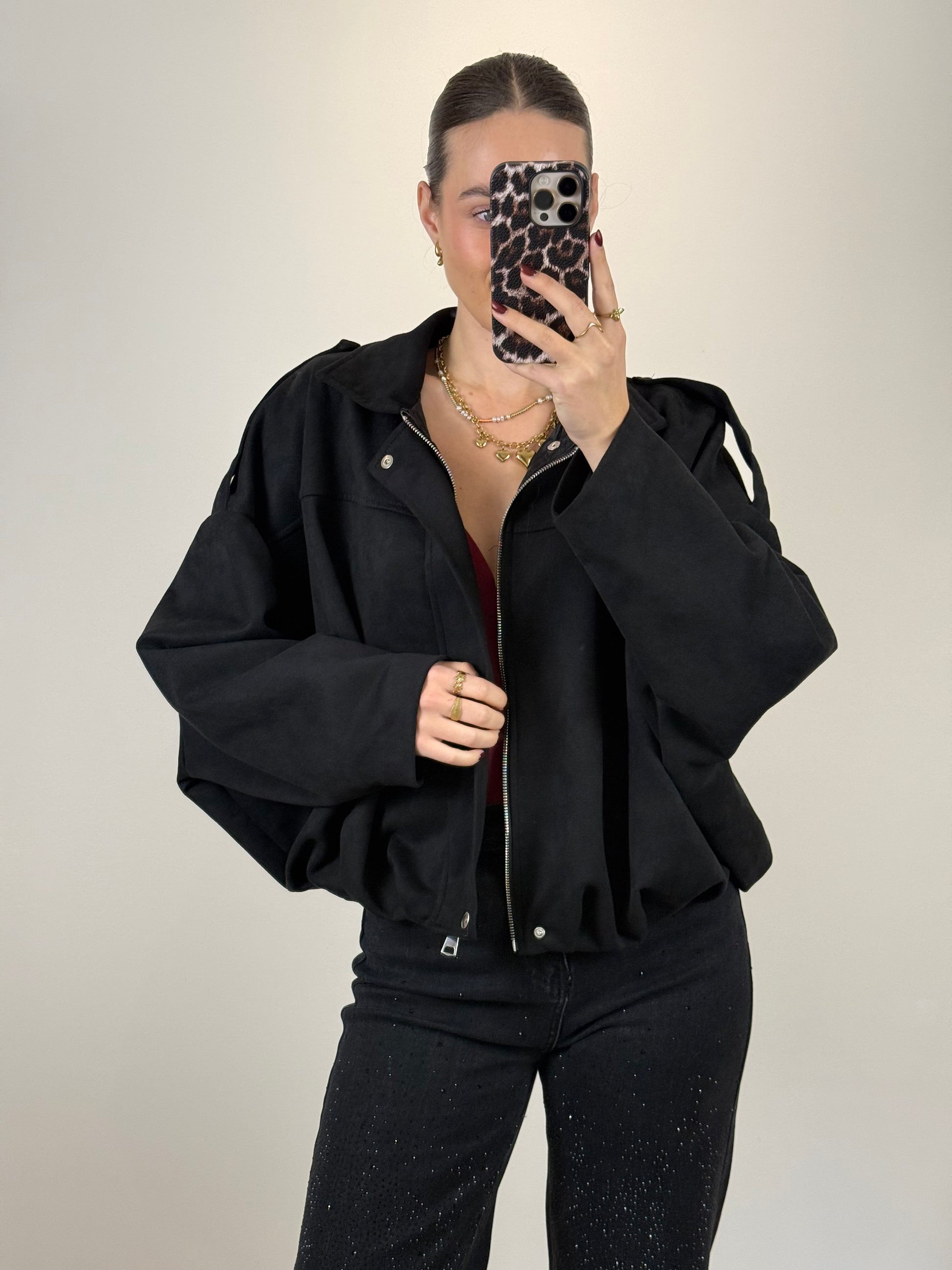 Ideaal voor het najaar, draag ‘m nu als jas en straks ook binnen als jack. De zachte suede-look stof maakt elke outfit compleet. Combineer met een jeans of pantalon voor een effortless fall look. We love it!