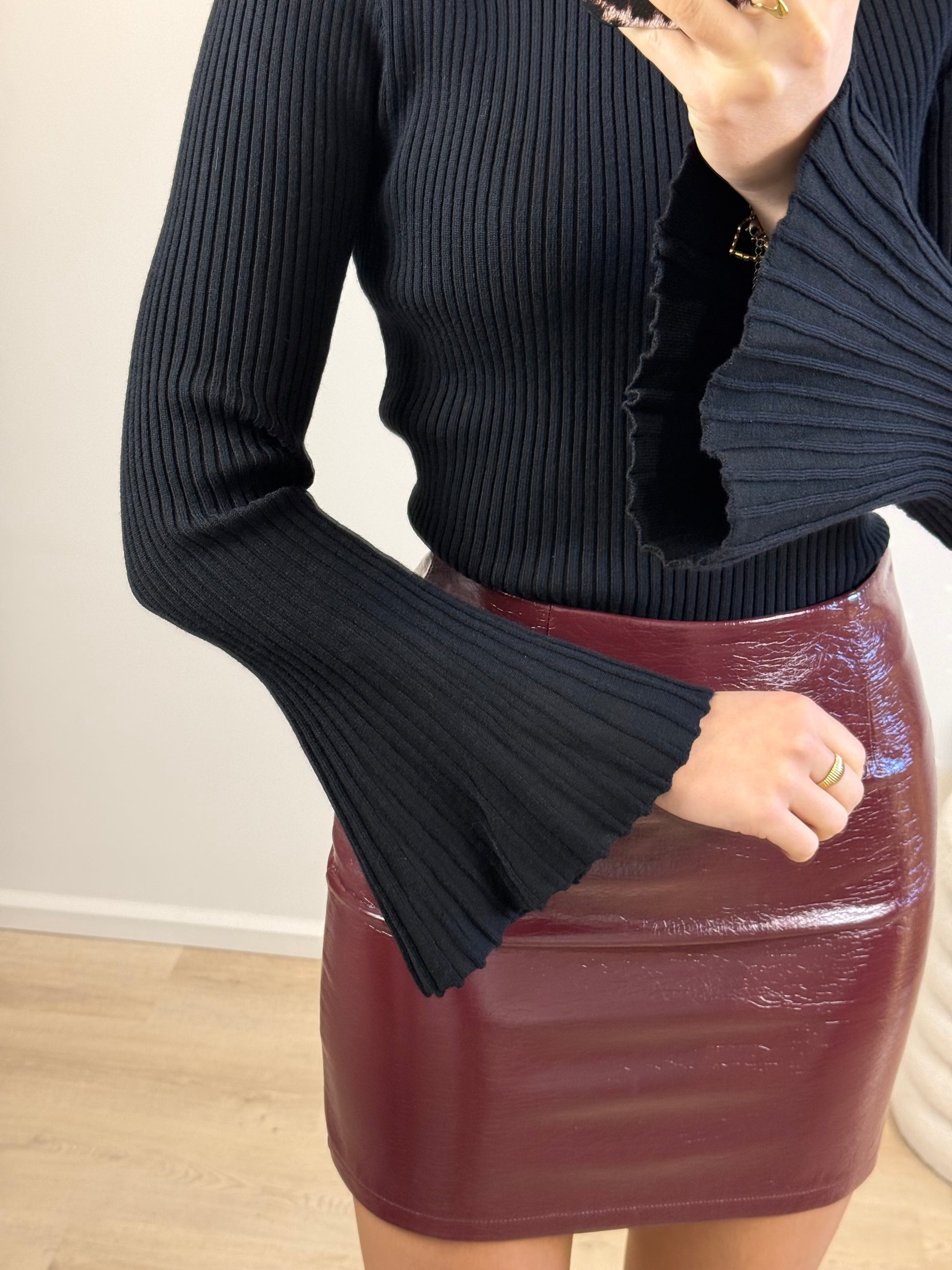Een goede basic mag niet ontbreken in je kast 🖤 Deze top met uitlopende mouwen voelt zacht aan, zit heerlijk en is door de mouwen nét wat specialer. Combineer met een glitterrok of pantalon voor een makkelijke maar leuke look. Deze top is zo’n item dat je blijft pakken!