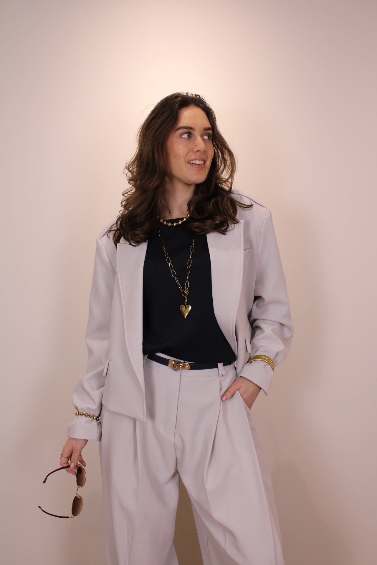 Dit oversized pak heeft een unieke ballon broek met een trench jasje en is echt een statement set. De fit is lekker wijd dus hier moet je van houden. Van het merk Jusdepom, bekend om de mooie kwaliteit voor een leuke prijs.